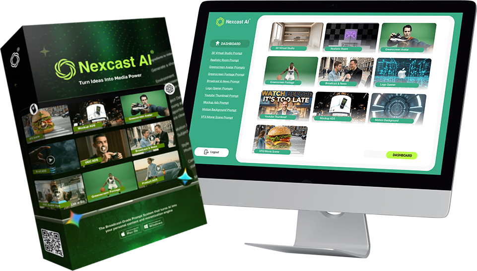 NexCast AI is The World's First Ready-Made AI Video Prompt System — giving you instant access to 1,200+ pre-built prompts across 13 video formats including UGC, VFX, Virtual Studio, Green Screen, Animated, BRoll, Shortform, and More. Built for marketers, creators, and agencies who want professional video output without the production cost, technical skill, or waiting time. One System. Every Format. Unlimited Results.